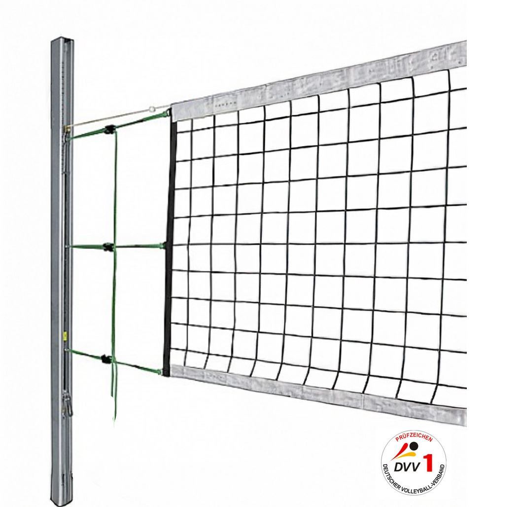 De DVV, de Duitse Volleybalbond, stelt eisen aan de wedstrijdnetten die bij volleybal worden gebruikt. Zeker op prestatief niveau moeten de materialen natuurlijk wel goed in orde zijn. Een DVV-1 volleybalnet van hoogwaardige kwaliteit kunt u snel en gemakkelijk bestellen bij D&D Sport. Dit wedstrijdnet is voorzien van de vereiste zespuntsophanging en beschikt eveneens over ingesloten glasfiber-polyester stokken. Zowel de boven als onderkant van dit volleybalnet is afgewerkt met een witte PVC band.